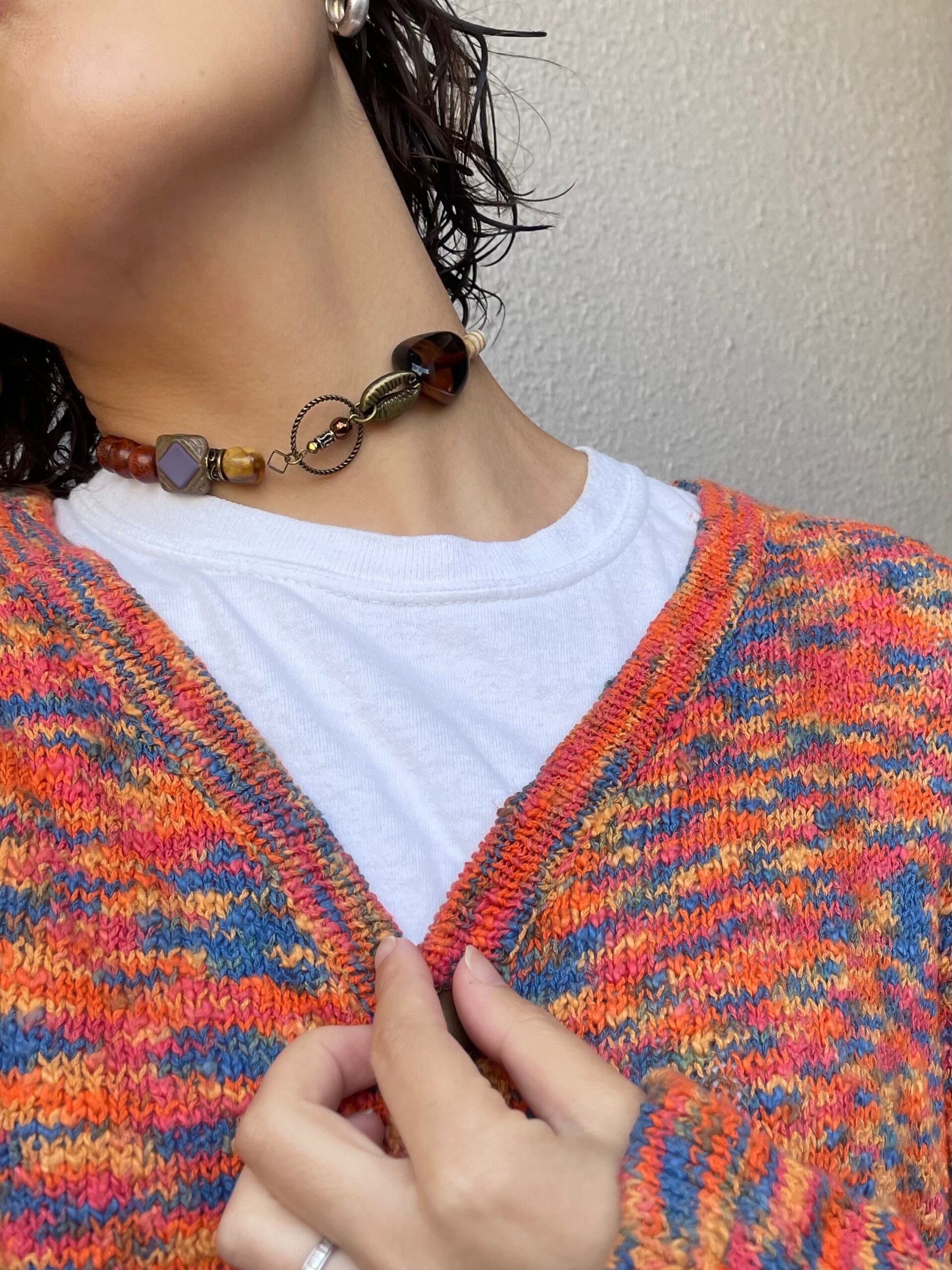"気まぐれ"をテーマに国内外で仕入れた個性的なヴィンテージパーツをひとつひとつ組み合わせてショートネックレスを作りました。