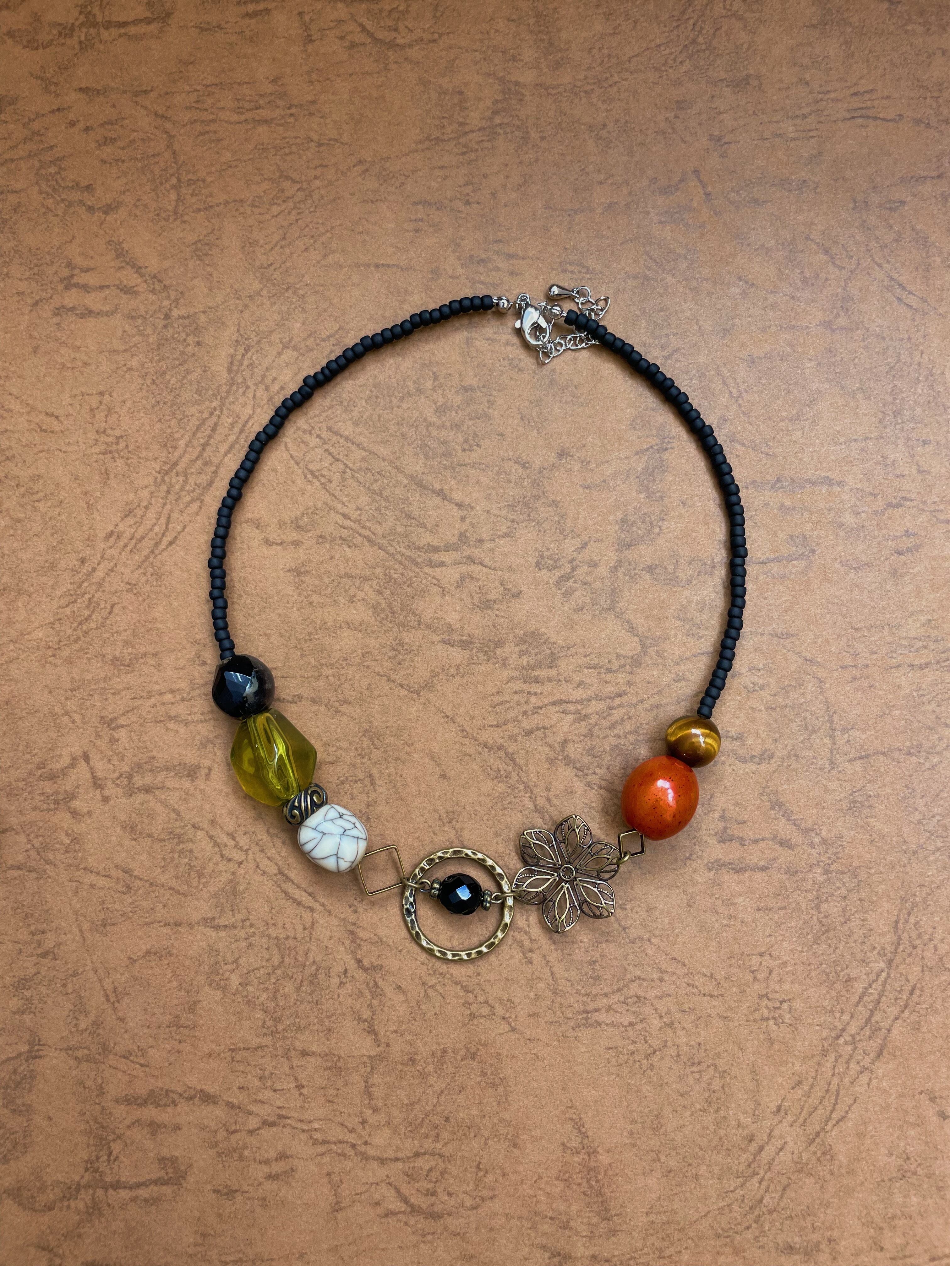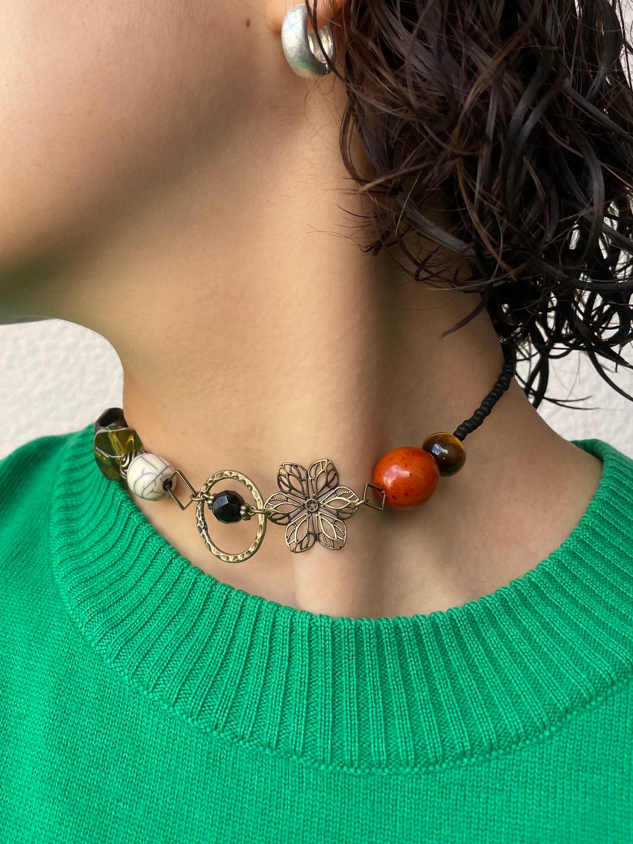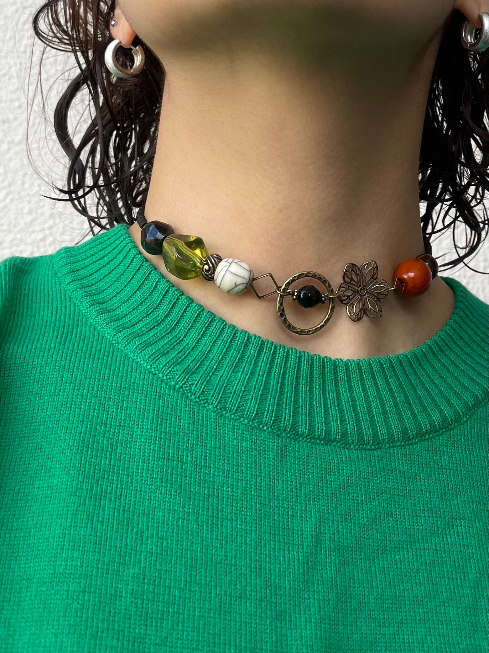 "気まぐれ"をテーマに国内外で仕入れた個性的なヴィンテージパーツをひとつひとつ組み合わせてショートネックレスを作りました。