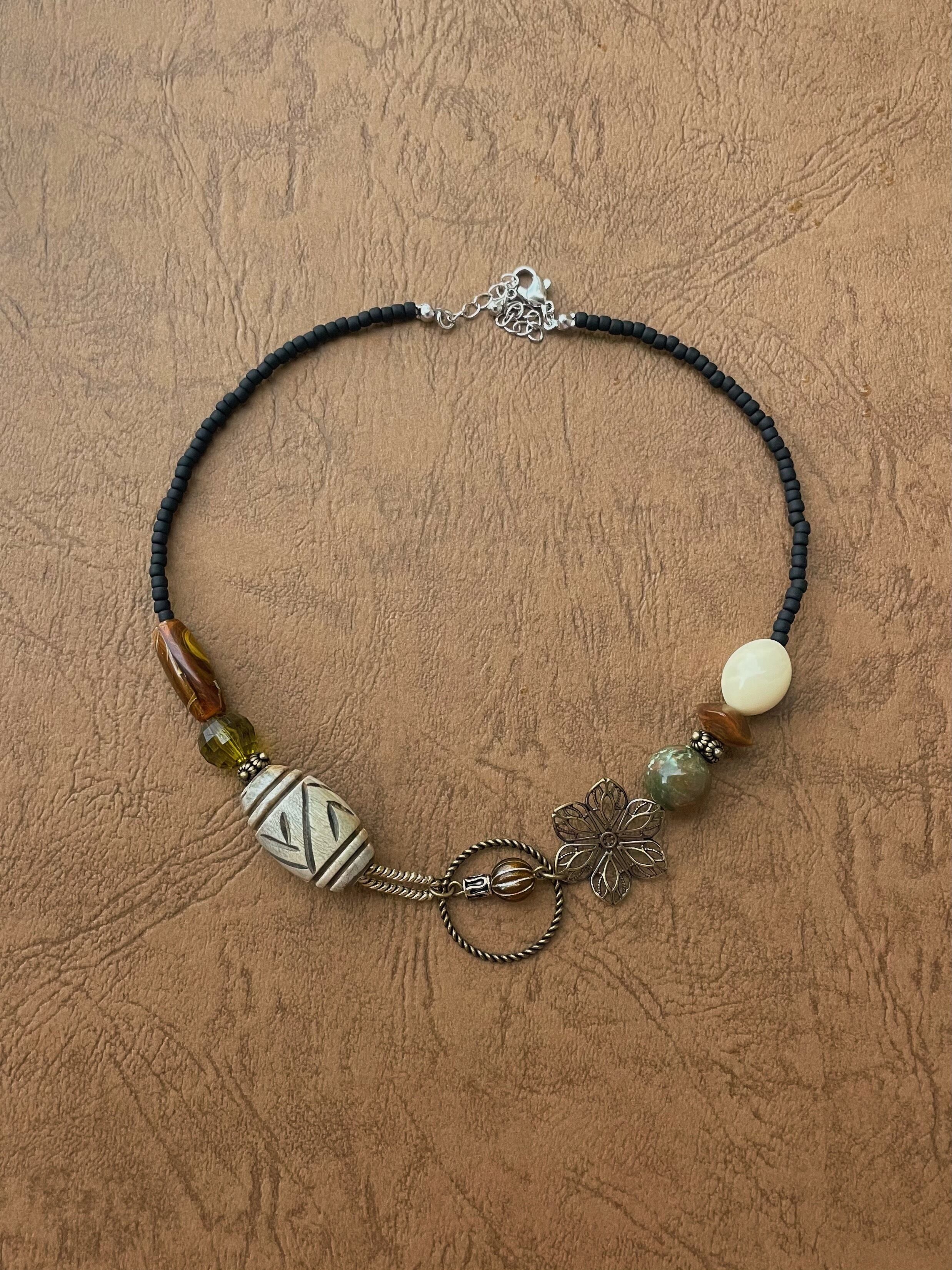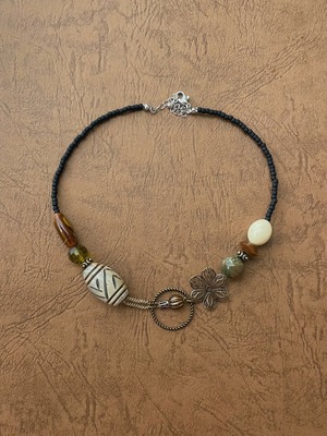 "気まぐれ"をテーマに国内外で仕入れた個性的なヴィンテージパーツをひとつひとつ組み合わせてショートネックレスを作りました。