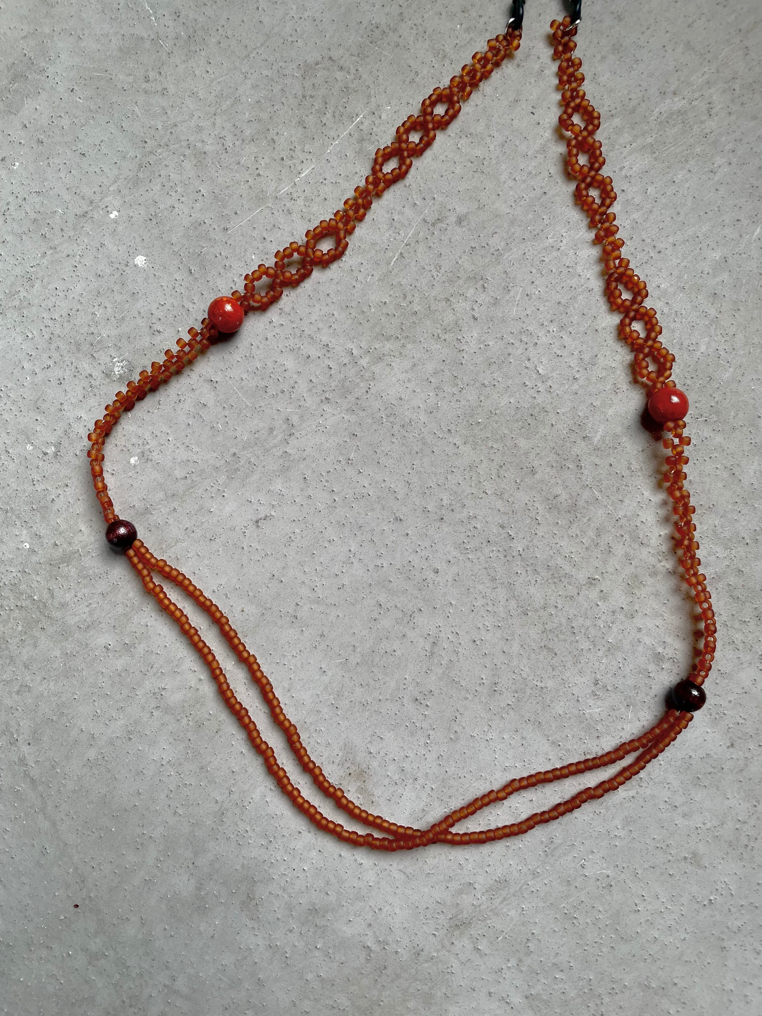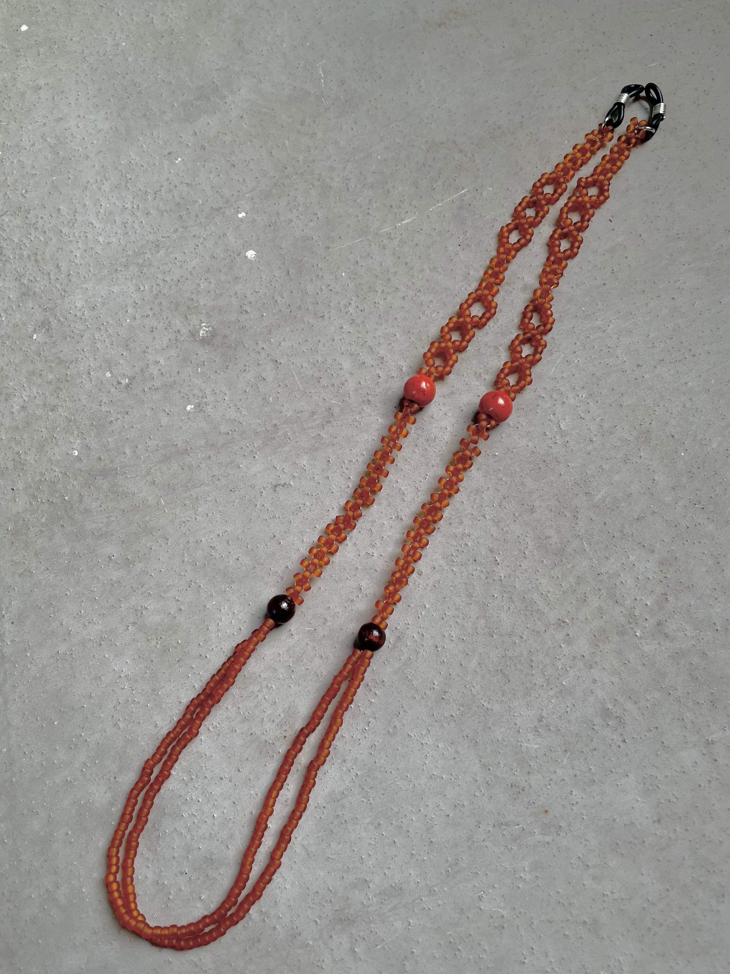 マットなビーズで1色で編み込む落ち着いたレトロな雰囲気のマスクチェーン。