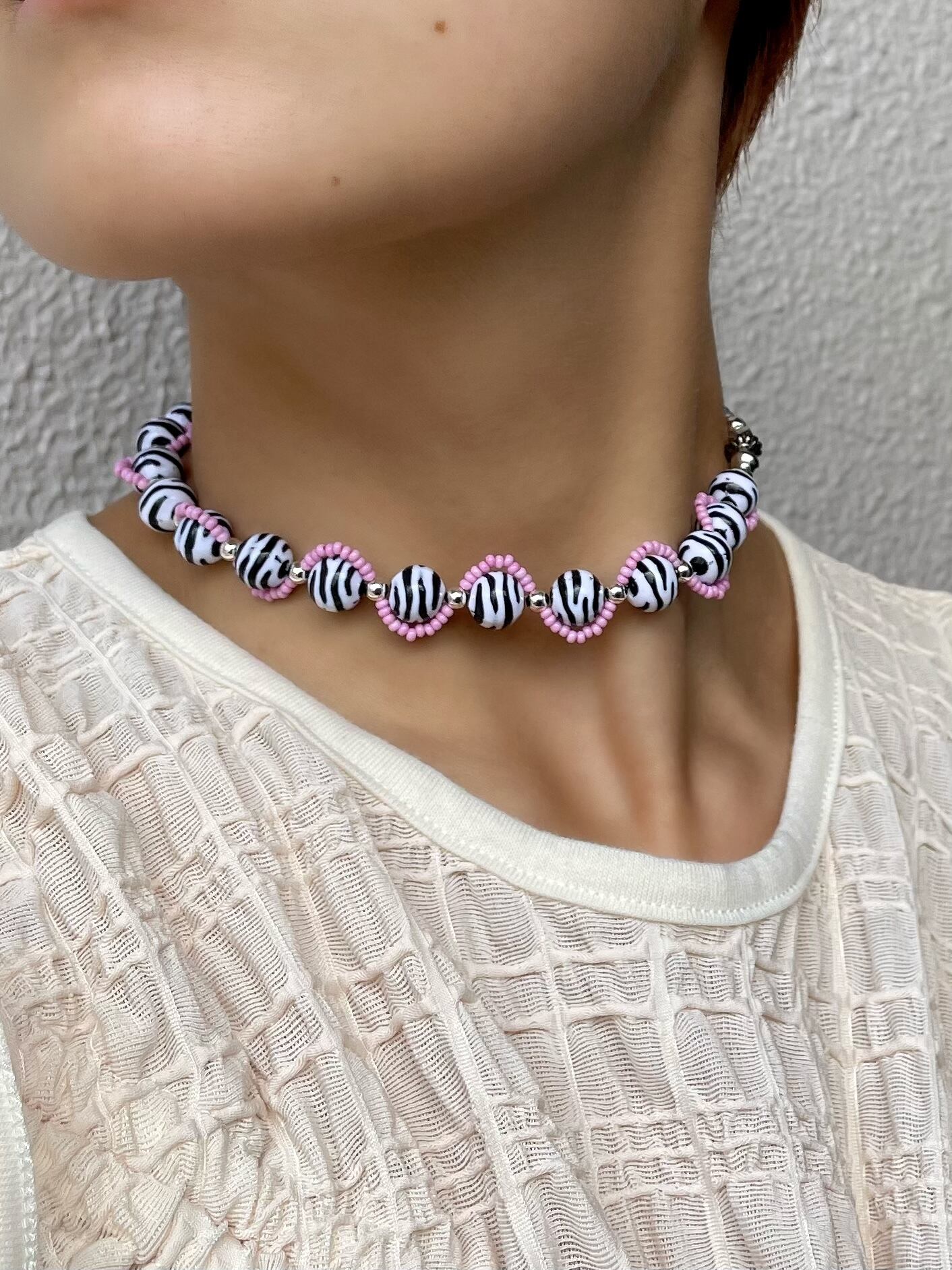 可愛らしいさの中にトゲもあるような、そんなショートネックレス。